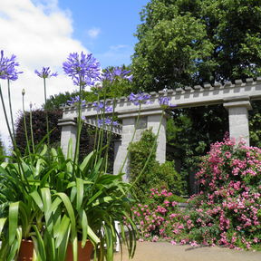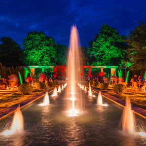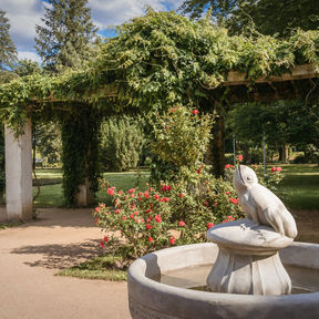 Nehmen Sie Platz im Schatten alter Bäume oder wandeln Sie in einem Meer von Duft und Farben. Genießen Sie eine Pause im Café an den Wasserspielen oder im Restaurant »Rosenflair«.